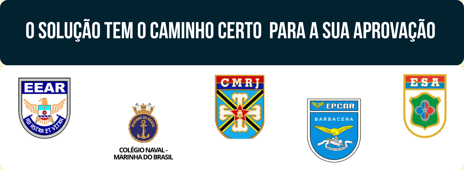Com professores experientes e plano de estudos individualizado, o Solução Aulas Particulares oferece um preparo completo, sério e eficiente, aumentando as chances de aprovação e ajudando o aluno a construir um caminho sólido rumo à carreira militar.